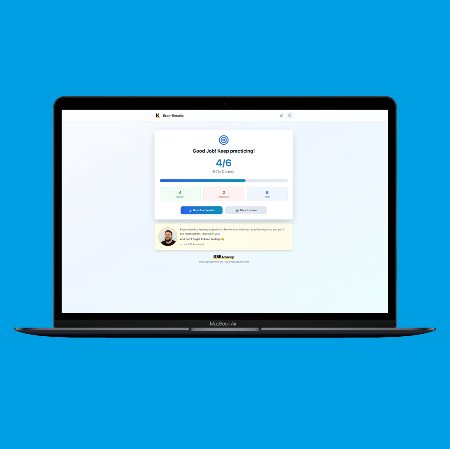 Your licence key will be sent to your email immediately after purchase. Start practising within minutes.
