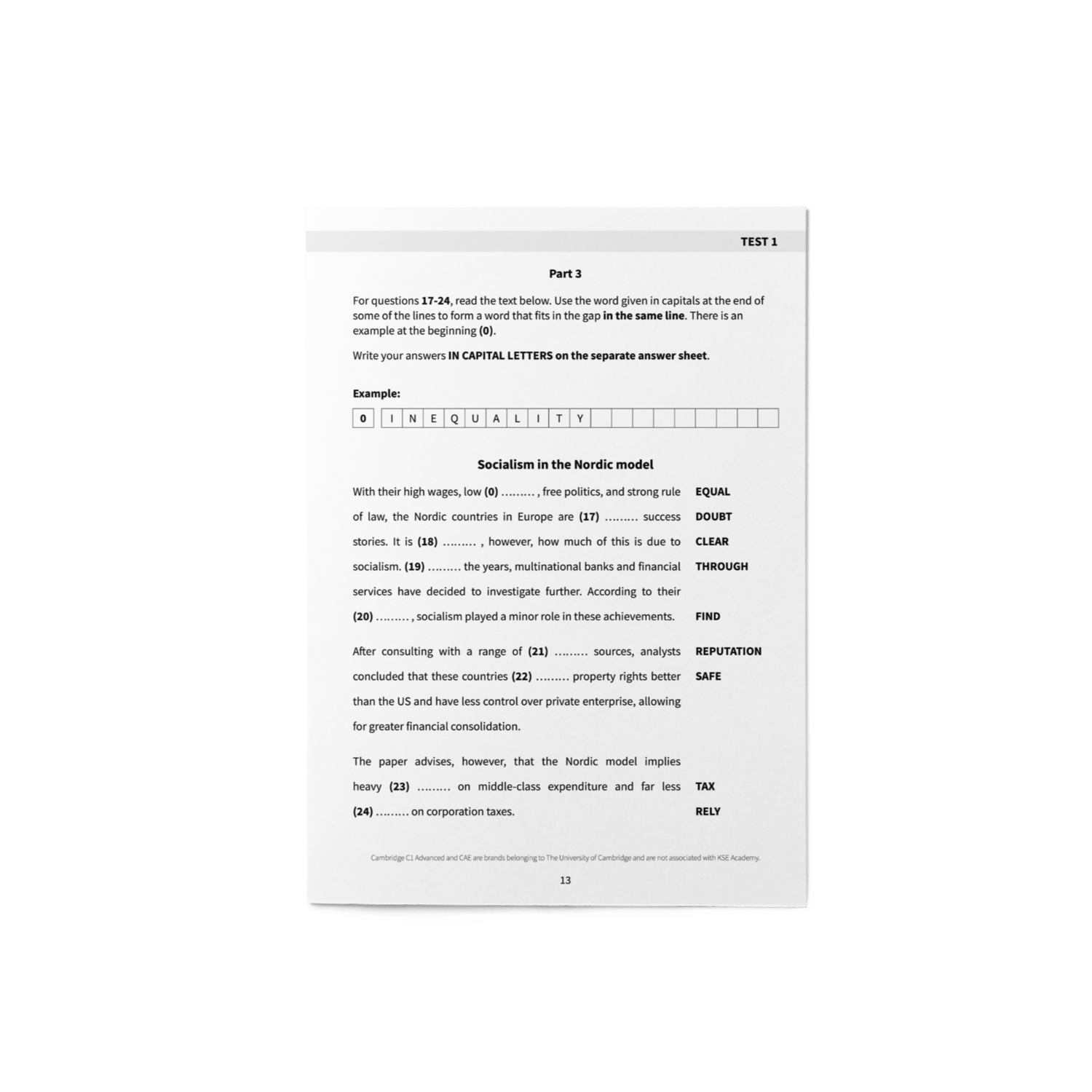 This book contains ten practice tests for the Use of English of the C1 Advanced test, formerly known as Certificate in Advanced English (CAE), an examination developed by Cambridge Assessment English.